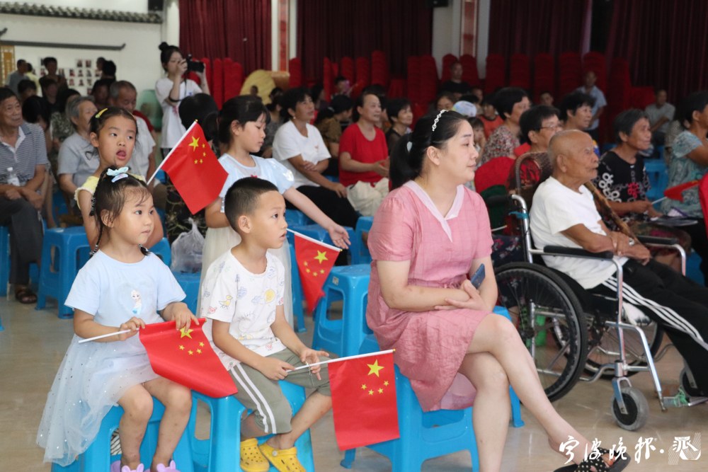 “朝着星辰大海的方向,当有对答世界的音量”“歌唱我们亲爱的祖国,从今走向繁荣富强”,杨晗、张天吉、张舟力涵等实践团成员带来的《有我》和《歌唱祖国》更是将礼堂内的氛围推向小高潮。现场观众跟随节奏在台下挥舞着手中的小红旗,轻声跟唱。