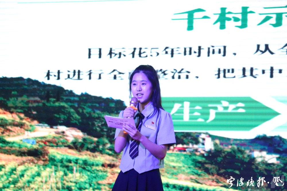 “什么是美好生活?”“什么是‘千万工程’?”“知言薪火”宣讲团郑若楠同学用娓娓道来故事开场,从“围墙革命”和“三峡移民”的实例入手,提出“坚持问题导向”与“坚持科学规划”,带来《“千万工程”何以实现美好生活》微宣讲。