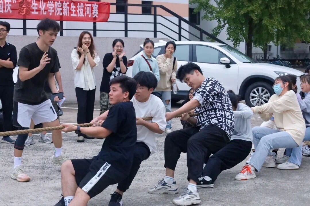图为沈斌超(黑色上衣第一位置)在学院新生拔河赛。中国青年网通讯员 卢帆 供图