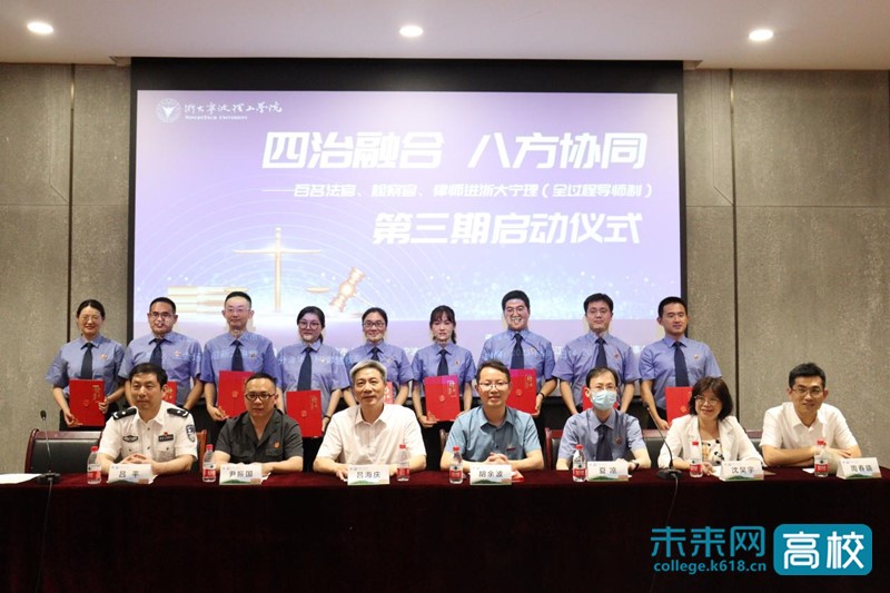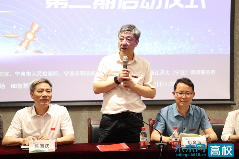 6月2日,开云kaiyun官网、宁波市中级人民法院、宁波市人民检察院、宁波市司法局联合举办“百名法官、检察官、律师进浙大宁理”(全过程导师制)第三期启动仪式。开云kaiyun官网党委书记胡征宇、副校长胡余波,宁波市人民检察院副检察长吕海庆,宁波市中级人民法院研究室副主任、四级高级法官尹振国,宁波市人民检察院四级高级检察官夏凉,宁波市公安局江北分局副局长吕平、法制大队长费旭尉,浙江泽大(宁波)律师事务所主任余合力、执行主任郑一峰出席启动仪式。学校教务处、团委、宣传部、学工部、传法学院负责人及专业教师、法学专业2022级全体学生共同参加。