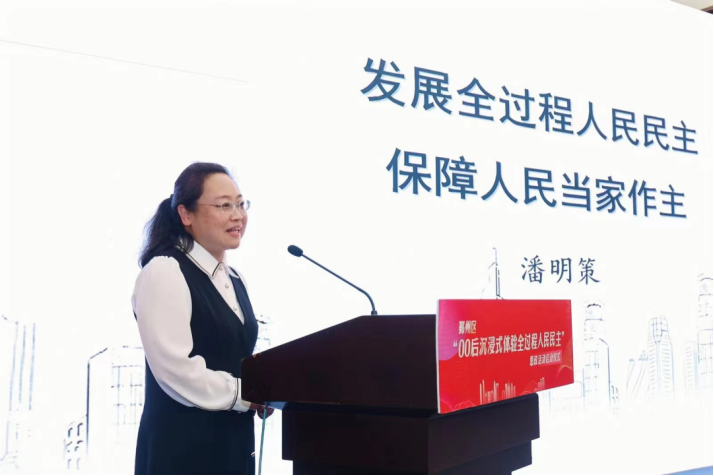 宁波市人大代表、鄞州区党校科研室主任潘明策,以《发展全过程人民民主保障人民当家作主》为题,为“00后”学生们分享了身边的民主案例。