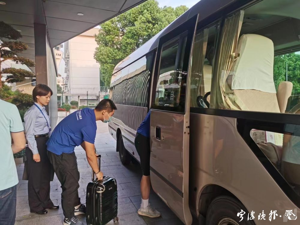 宁波城市职业技术学院的青年志愿者耿嘉骏每天穿梭于国际会展中心和驻地酒店之间,他的服务点位就是一辆专线大巴车。