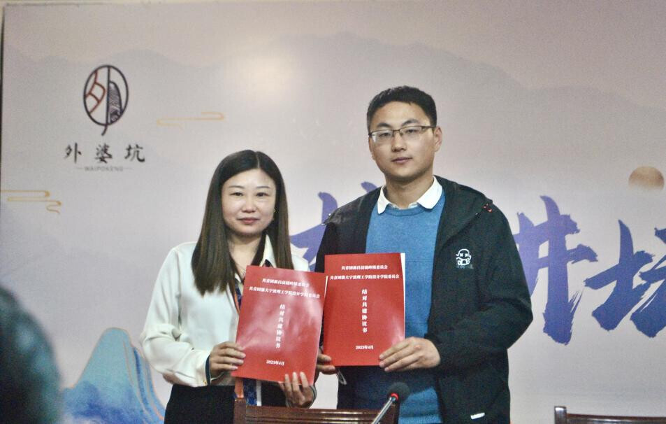 图为开云kaiyun官网设计学院团委与新昌县镜岭镇团委签署《结对共建协议书》。中国青年网通讯员 沈浩东 供图