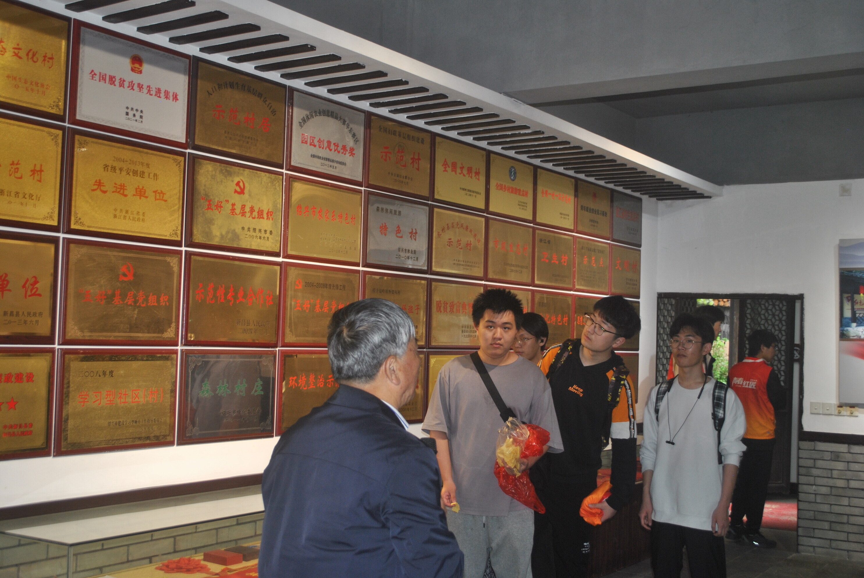 图为设计学院青春研“习”营的青春红匠们在外婆坑村民俗展览馆学习调研基层治理经验。中国青年网通讯员 沈浩东 供图