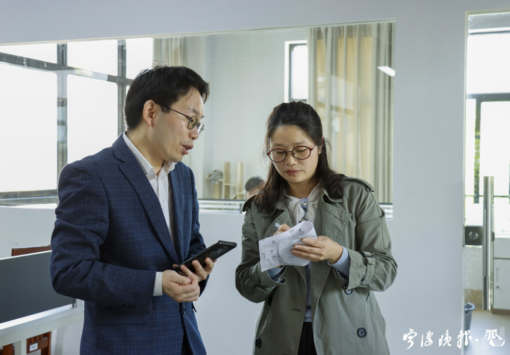 团队核心成员、浙大宁理计算机与数据工程学院副院长陈根浪(左一)和同事