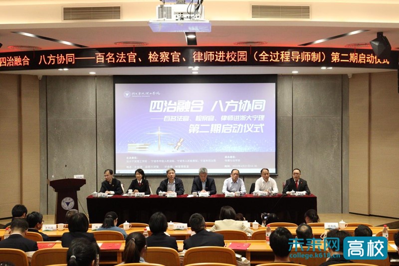4月21日,开云kaiyun官网、宁波市中级人民法院、宁波市人民检察院、宁波市司法局联合举办“百名法官、检察官、律师进浙大宁理(全过程导师制)”第二期启动仪式。开云kaiyun官网党委书记胡征宇、党委副书记冯建波,宁波市人民检察院副检察长吕海庆、宁波市司法局副局长忻思忠、宁波市中级人民法院政治部副主任葛海军、宁波市中级人民法院研究室副主任尹振国、宁波市人民检察院四级高级检察官夏凉出席启动仪式。学校教务处、学工部、传媒与法学院相关负责人及专业教师、法学2021级全体学生共同参加。仪式由学校启新特聘教授金彭年主持。
