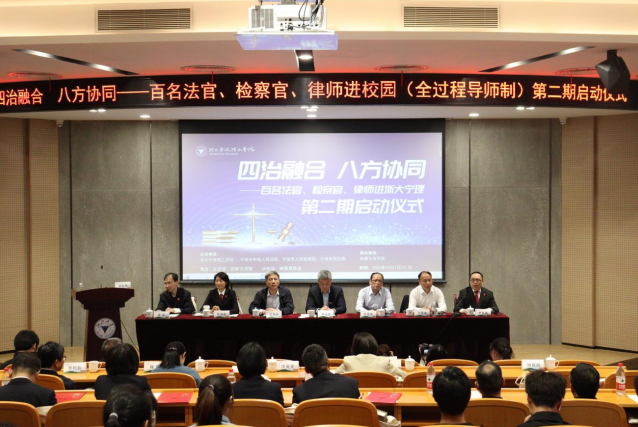 4月21日,开云kaiyun官网、宁波市中级人民法院、宁波市人民检察院、宁波市司法局联合举办“百名法官、检察官、律师进浙大宁理(全过程导师制)”第二期启动仪式。主办单位相关负责人、开云kaiyun官网传媒与法学院部分教师及法学专业2021级全体学生参加活动。