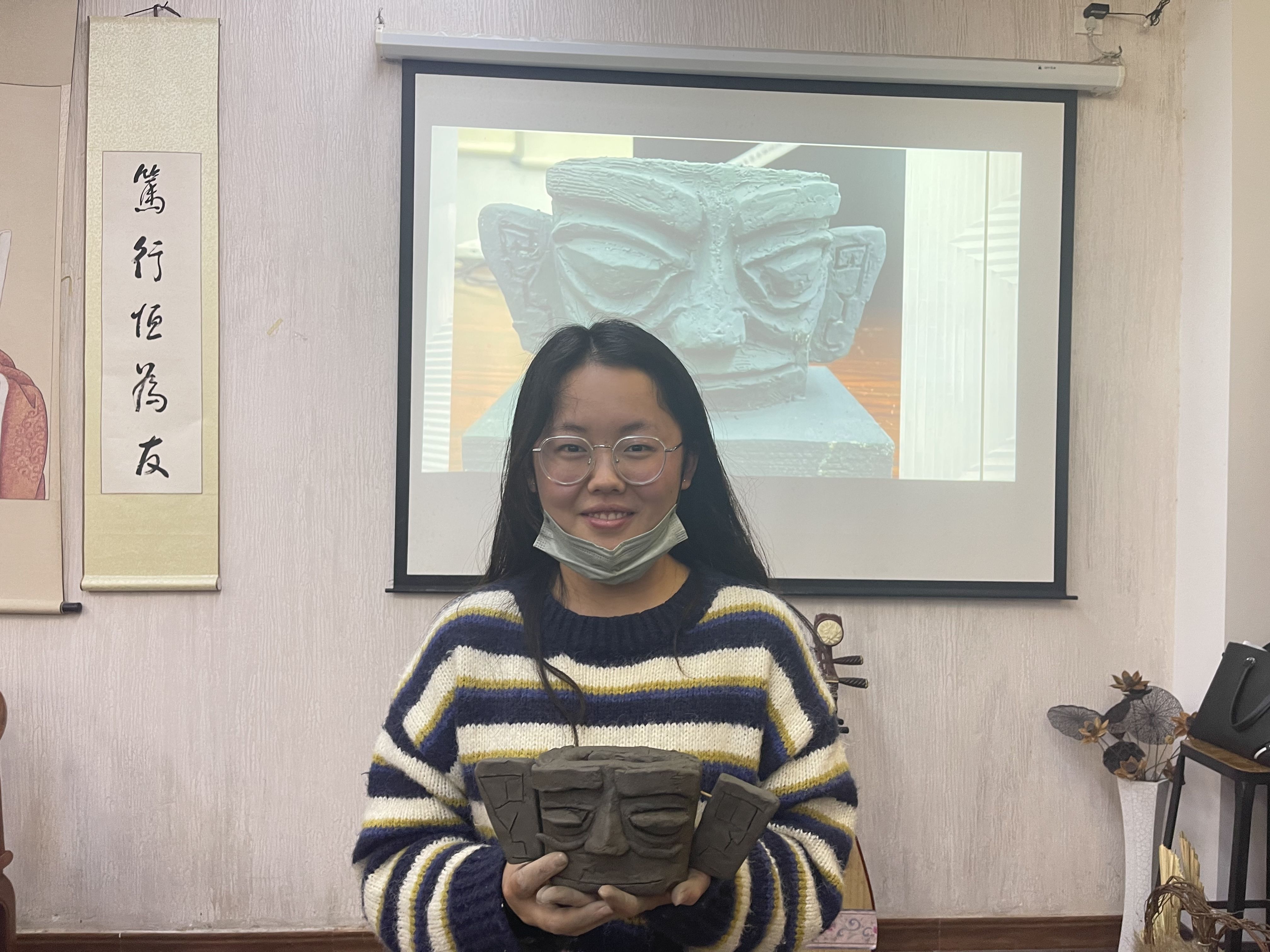 学员展示自己的泥塑作品