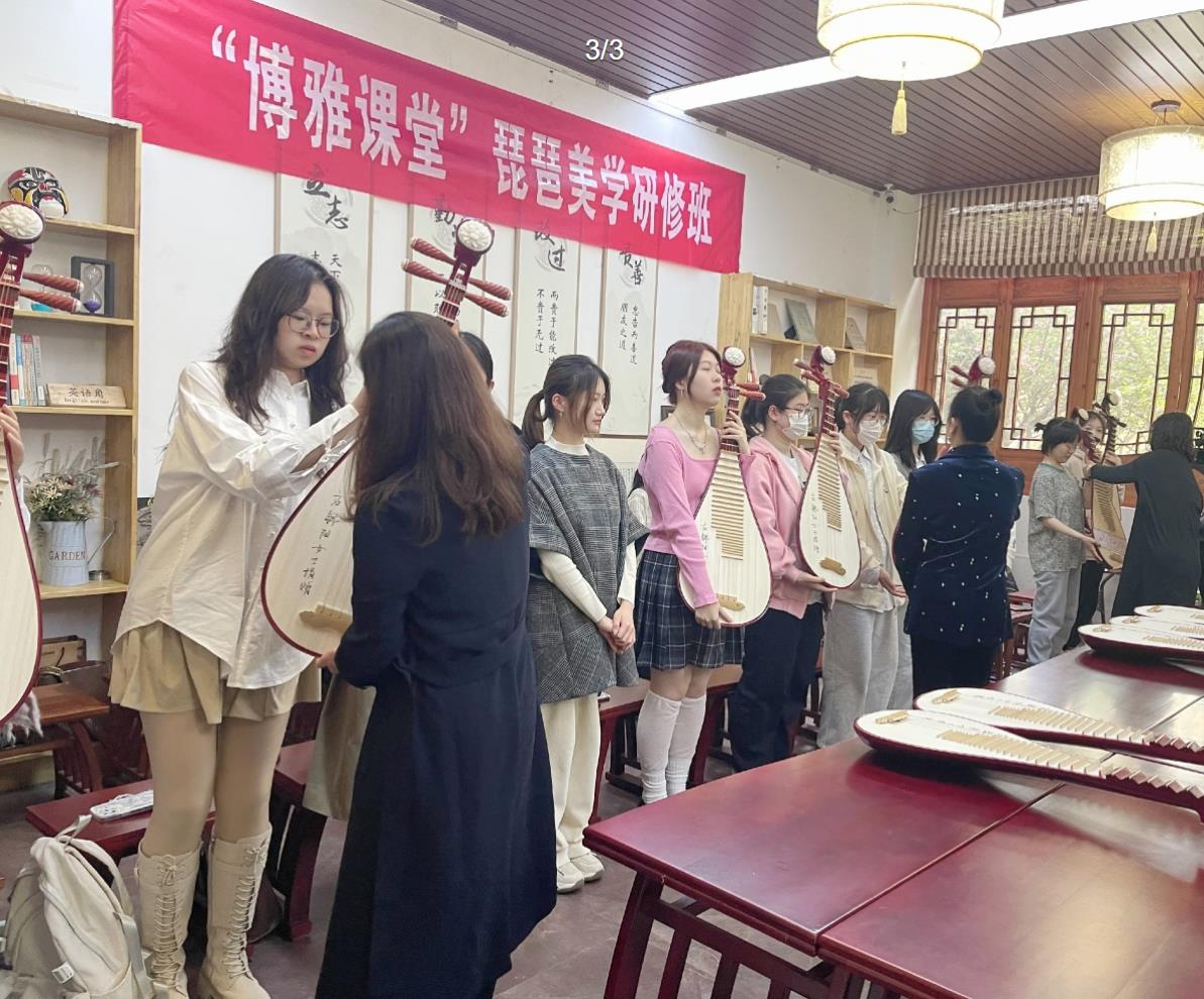 活动上,应锦阳将12把琵琶捐赠给阳明学堂,并为同学们开展琵琶美学博雅课程研修的相关内容。