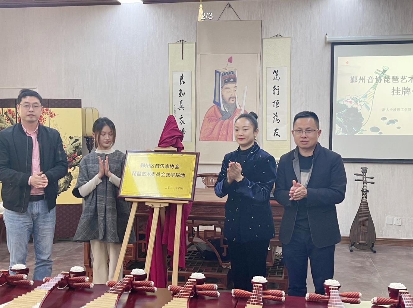 近年来,鄞州区音乐家协会琵琶艺术委员会面向鄞州区各地积极开展琵琶公益普及活动,4月12日下午,在浙大宁理阳明学堂教学基地挂牌仪式现场,这是鄞州高校琵琶传承普及的一个新基地,同时,也是鄞州琵琶艺术委员会开展的第16期琵琶公益课的首课。