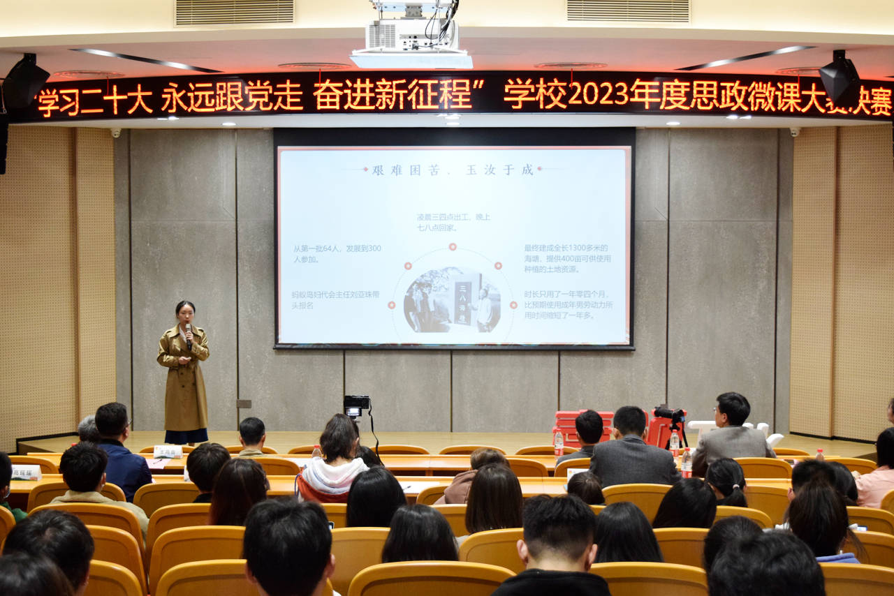 3月14日,开云kaiyun官网2023年思政微课大赛决赛在启新大讲堂举行。全校250余名师生观摩了比赛。