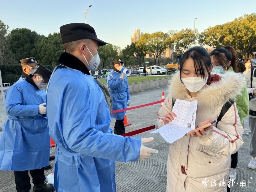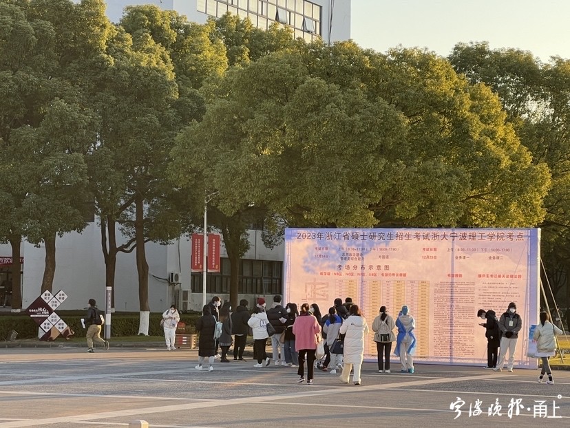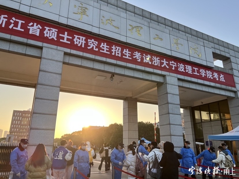 校门口有几位家长目送着考生们走进校园,拿出手机记录这一特殊时刻。“今年考研真的不容易!”家长们都感叹说。“这次备考就很曲折,儿子在外地读大学,12月初一波三折回到宁波,就专心备考了。最近外面的形势一直在变化,我们一直很担心!”有位陈姓妈妈告诉记者。还有个家长说当天为孩子一早做了便当保温带到学校,“中午就不出来了,尽量做到考场和家之间点对点进出。”