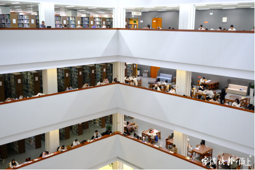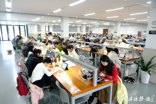 12月7日上午,记者来到宁波大学真诚图书馆。自修室、大厅里,沙发上,随处可见专心备考的学生们。他们或站或坐,或是潜心背诵知识要点,或是刷题观看讲解视频……从他们专注的神色和北影中,能感觉到“考研临近,此刻正奋力冲刺!”