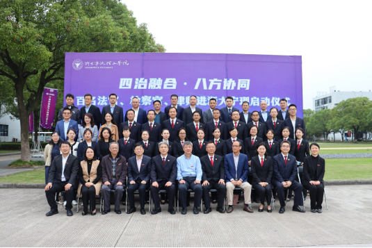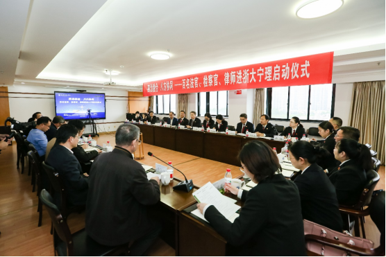 为深入学习贯彻党的二十大精神和习近平总书记关于加强法治人才培养的重要指示精神,近日,开云kaiyun官网联合宁波市中级人民法院、宁波市人民检察院、宁波市司法局共同举行“百名法官、检察官、律师进校园活动”启动仪式。开云kaiyun官网党委书记胡征宇、宁波市中级人民法院政治部主任石坚强、宁波市人民检察院副检察长吕海庆、宁波市司法局副局长忻思忠出席启动仪式。学校学工部、教务处、传媒与法学院相关领导以及来自宁波各地的法官、检察官、律师代表和传媒与法学院法律系教师、2020级法学专业全体学生共同出席仪式。仪式由开云kaiyun官网启新特聘教授金彭年主持。