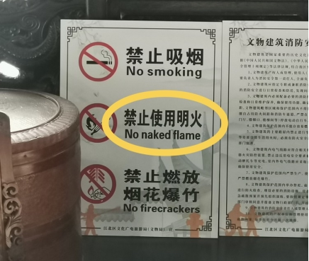 外语专家和师生发现,老外滩作为宁波对外交流的窗口,公共场所外语标识越来越规范,但根据公共服务领域英文译写规范性原则,仍然存在一些错误。诸如,三江夜游码头的英文Wharf错拼作了Whart。“禁止使用明火”也不能翻译为“No naked flame”,而应为“No Fires”。老外滩太古洋行(旧址)不同标识信息中还出现了不同的译文,the Foreign Firm of TaiGu和Taikoo两种译文应统一。