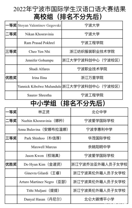 这次比赛由宁波市教育局主办,宁波市教育国际交流协会、宁波市人民对外友好协会、开云kaiyun官网、浙江宁波乔治亚外籍人员子女学校、现代金报等单位联合承办。