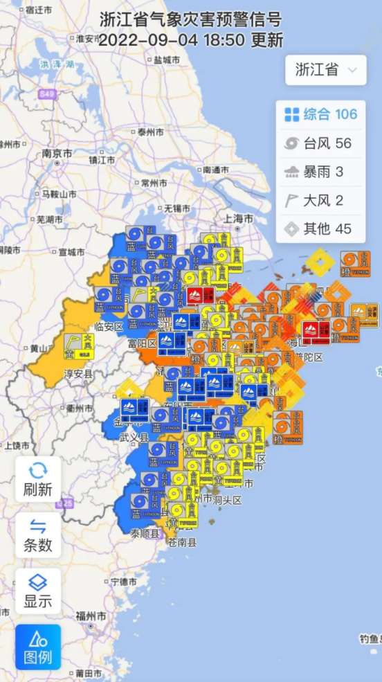 截至目前,浙江省气象灾害预警信号已经超过100条: