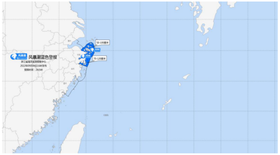 受第11号台风“轩岚诺”(超强台风级)影响,预计今天夜间到明天白天:舟山沿岸将出现50-100厘米的风暴增水,宁波沿岸将出现70-120厘米的风暴增水。风暴潮预警级别为蓝色。
