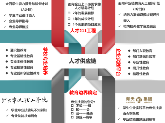 人才培养“211工程”是专门针对进入现代高端装备及智能制造产业学院的学生进行的职业规划与育人实践计划;是一项以“2年发展目标、1年成长计划、1项落地成果”为主要内容和任务的人才培养周期综合举措和人才供应链体系。