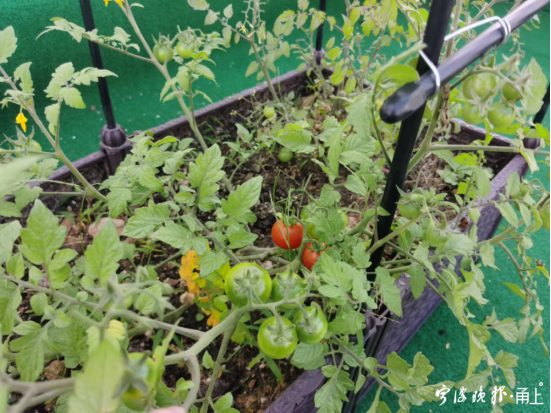 这学期,顶楼花园增加了“新成员”,黄瓜、小番茄、丝瓜也进入到花圃“大家庭”。金老师说,相比鲜花,这些蔬菜水果更受同学们的欢迎,“亲手种植的果子,送老师,送同学,都别有一番趣味。”金老师说。