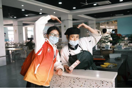 师生们说:“感谢所有的后勤工作人员,感谢你们的坚持和守候,感谢你们无微不至的关心,感谢你们替我们负重前行。”