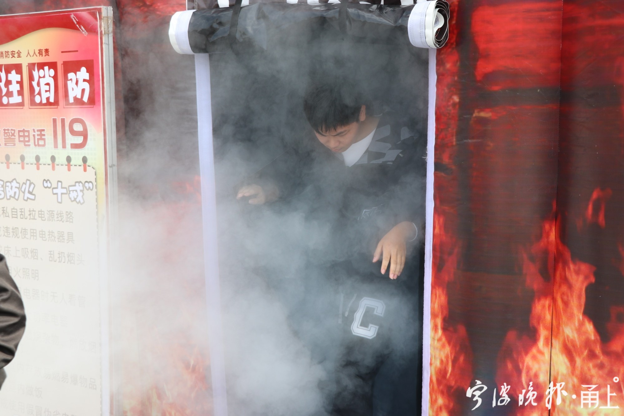 在这场“沉浸式”消防体验活动中,师生们体验了烟雾逃生、电子灭火等。