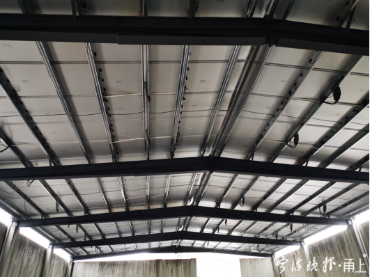 抬头望去,长2米、宽1米的镀锌钢板紧密地排列着,每四块钢板之间布置着一个微型逆变器,面向天际的光伏面板,就是通过它们转换电能。