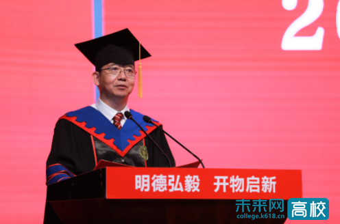 该校校长杨德仁院士寄语毕业生“让创新成为青春远航的不竭动力”。他深情表示,从同学们青春洋溢的脸庞里看见四十年前的自己,为同学们的成长成才感到高兴与骄傲,向为同学成长倾心付出的老师们表示感谢。他用著名地球物理学家黄大年、把论文写在祖国大地上的袁隆平,以及身边的典型勉励同学们要至诚报国,勇担使命,为祖国的富强、民族的复兴尽自己的一份力量;要学无止境,勇攀高峰,做锐意进取的求知者,终生求知的弄潮儿;要创所未创,勇做先锋,保持积极探索的人生状态,敢于选择有挑战性的事业,做不畏艰辛的创新者。嘱咐大家“有梦就勇敢去追,母校永远是大家的坚强后盾和精神家园!”