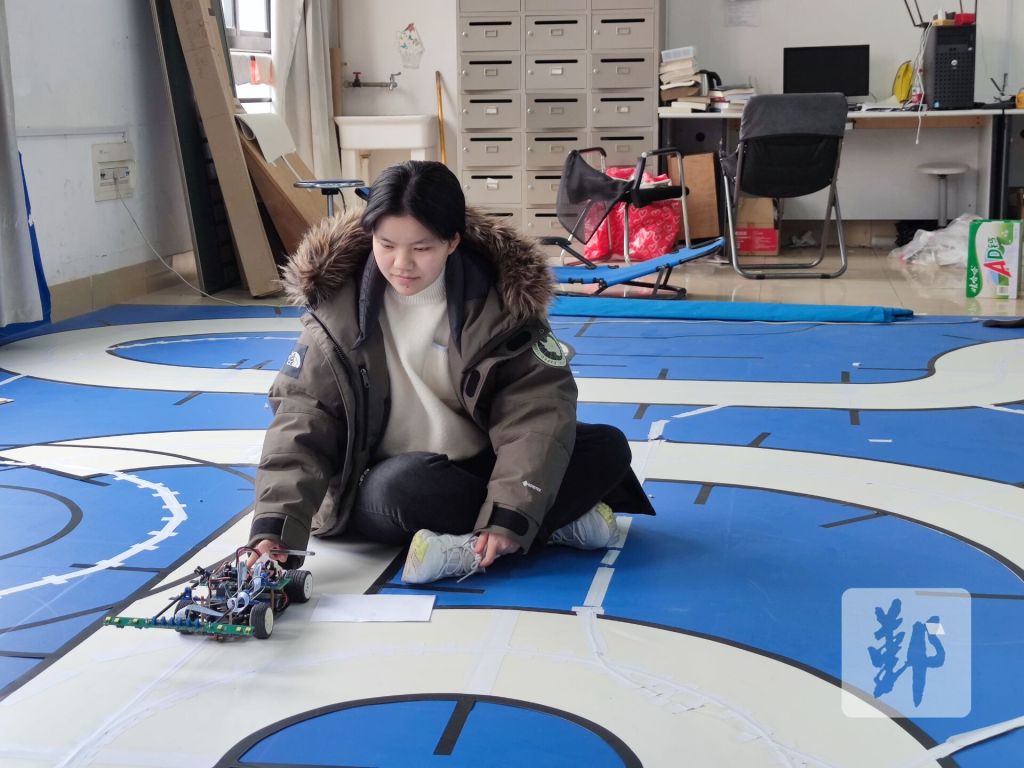 全国飞思卡尔智能车大赛——刘慕洁口中可爱有趣的“小车比赛”,是指在IAR软件上进行代码编写,利用下载器下载到芯片上,再通过传感器反馈参数,以此来控制小车在赛道上的运行轨迹的比赛项目。由于之前使用的开发系统过于老旧,这一年团队导师决定更换智能车研发所需的一整套材料。这也就意味着刘慕洁与团队伙伴无法再“站在前人的肩膀上”,只能在新的起点上进行探索。此外,因比赛道路复杂多样,智能车无法准确识别赛道上的元素,如将“小转弯”错误地识别为“圆环道路”,导致小车行动轨迹常常出现失误,再加之赛道上断路和障碍物的设置,都成为了智能车前行的一大问题。一次次试验传感器能如何更准确地识别出赛道元素、思考传感器怎么跟和谐码进行更良好的联调以及器件间如何联动工作,是备赛期间刘慕洁反复在做的事情。功夫不负有心人,她和团队伙伴在小车芯片上引入电磁模块以及超声波模块,并调节各个传感器的中断时间、调用的优先级等,以保证传感器能够完整、准确地采集数据,使智能车突破障碍,快速前行。回忆起那段咬紧牙关攻克困难的时期,刘慕洁很感慨:“比赛前每天跪在地上研究智能车的传感器,直至赛后很长一段时间内,膝盖还仍然隐隐发酸、作痛。”