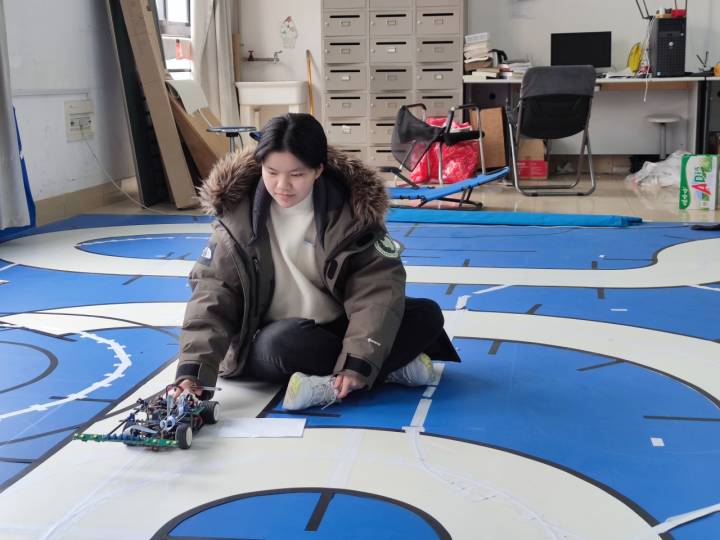 一次次试验传感器能如何更准确地识别出赛道元素、思考传感器怎么跟和谐码进行更良好的联调以及器件间如何联动工作,是备赛期间刘慕洁反复在做的事情。
