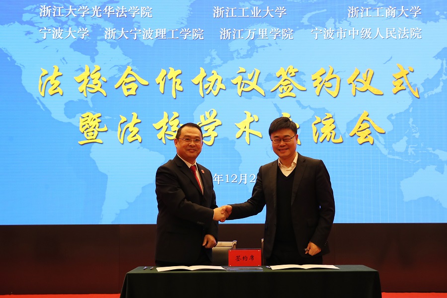 央广网宁波12月26日消息(记者杜金明 通讯员钟法)12月26日下午,宁波中院与浙江大学光华法学院、浙江工业大学、浙江工商大学、宁波大学、浙江大学宁波理工学院、浙江万里学院六所高校(法学院)举行“法校合作协议签约仪式暨法校学术交流会”。