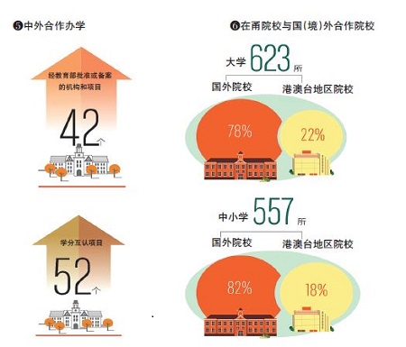 不仅是高等教育,今天的宁波学生在家门口,就能享受到多国优质的教育资源。在中小学,宁波实施“千校结好”行动计划,引进国外STEAM教育、创新创业教育等优质资源,培养中小学生国际视野和素养。据统计,全市中外合作办学项目和机构达到40个,覆盖了高中到高等教育学段。