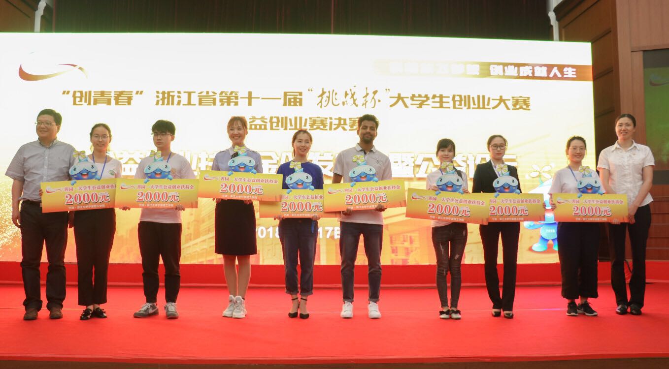 今天,“创青春”浙江省第十一届“挑战杯”大学生创业大赛决赛第一战——公益创业赛在浙江大学宁波理工学院打响。通过激烈角逐,公益创业赛共产生金奖8项,银奖8项。