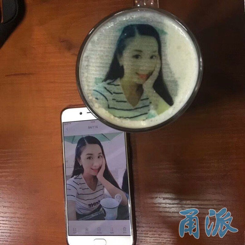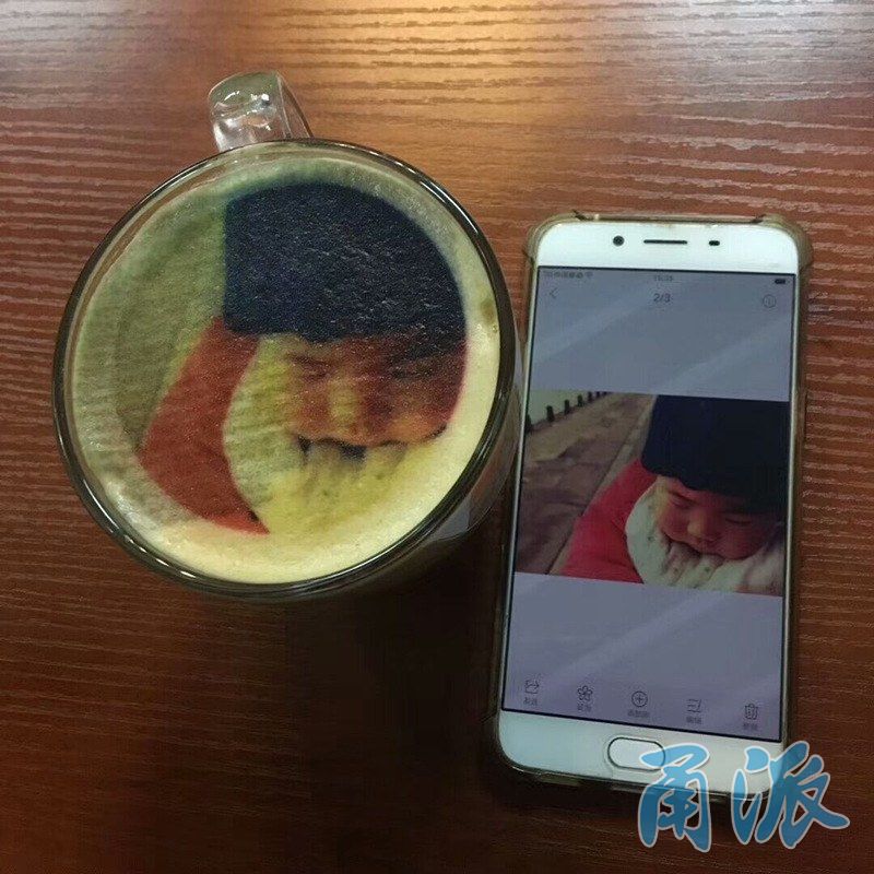 “阳明乐咖啡”坐落于宁波理工学院SC大楼一楼,在闲暇之余,师生们总会在这里点上一杯咖啡,伴随着浓浓的咖啡香或是读书写字,或是探讨问题。近日,“阳明乐咖啡”推出的创意咖啡再一次吸引了大家的目光。师生们可以选择自己喜欢的图案,通过店里的拉花机用纯天然色素打印在咖啡上,将选择的图案完美呈现,就能得到一款好喝、好看又好玩的咖啡。交流的过程中,店长亲自为记者制作了一杯创意咖啡,那可爱俏皮的猫咪图案浮于表面,还真是不忍心将它喝掉。