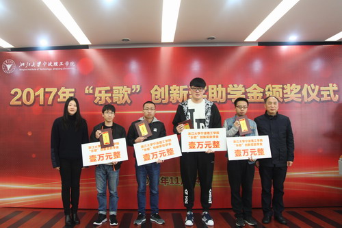 浙江大学宁波理工学院“乐歌”创新奖助学金颁奖仪式24日举行。今年的评选经过申请、评审、公示等环节,共有9支学生团队、46名学生获得乐歌奖助学金共15万元。