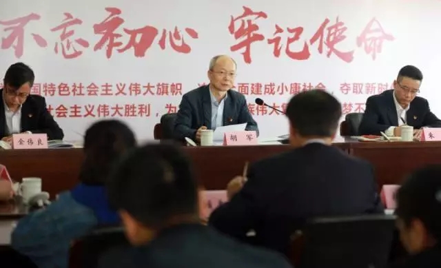 座谈会中,胡军从党的十九大会议概况及其重大意义、党的十九大精神的主要内容、如何学懂弄通做实党的十九大精神等方面,宣讲了党的十九大精神。他指出,党的十九大是在新的历史起点上开启党和国家事业新征程的一次大会,具有划时代、里程碑的意义。大会为新时代指路领航、以新思想举旗定向,深刻阐述了新时代中国共产党的历史使命,确定了决胜全面建成小康社会、开启全面建设社会主义现代化国家新征程的目标,对新时代推进中国特色社会主义伟大事业和党的建设新的伟大工程作出了全面部署,对于我们党团结带领全国各族人民,决胜全面建成小康社会、夺取中国特色社会主义伟大胜利、实现中华民族伟大复兴的中国梦,具有重大的政治意义、理论意义、实践意义。