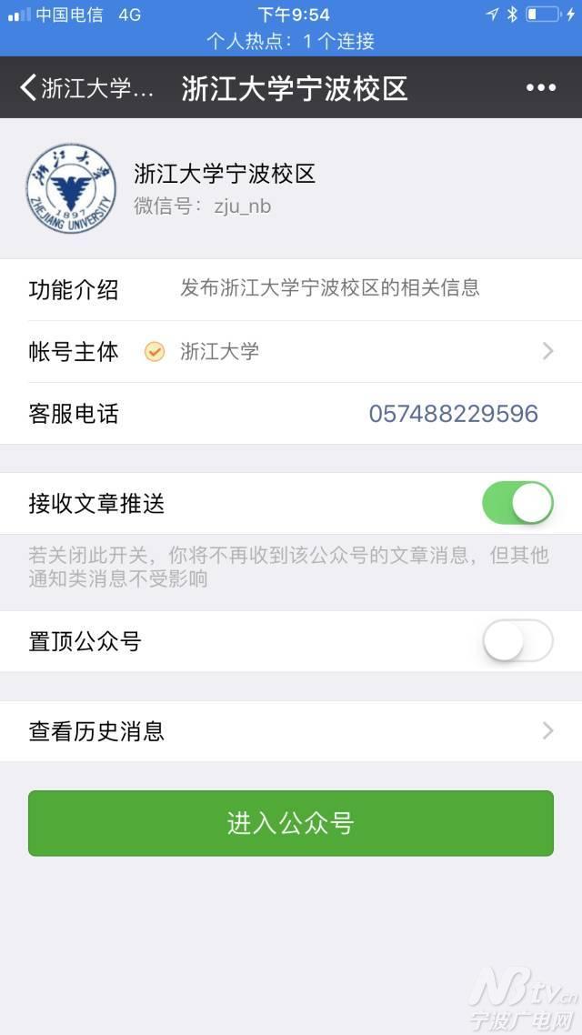 这个微信公众号的认证主体为浙江大学,名称即为浙江大学宁波校区,功能为发布浙江大学宁波校区的相关信息,从本月24日开始,陆续发布了多条信息,多为软件学院、工程师学院宁波分院招生以及开学典礼等信息。