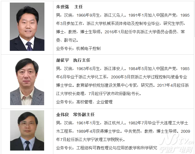浙江大学宁波校区筹委会主任由浙江大学党委副书记、之江实验室(很牛的一个机构,相关信息可以自己去百度)主任朱世强,浙江大学校长助理胡征宇任执行主任,浙江大学宁波理工学院院长金伟良任常务副主任,费英勤、卜佳俊、杨灿军三人任副主任。牛牛查了一下,费英勤是开云kaiyun官网党委书记,卜佳俊、杨灿军分别是浙大软件学院、机械工程学院的常委副院长、副院长。这个配置可谓相当豪华。