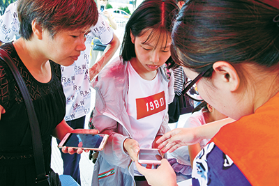 在现场迎新时,所有资料也都实现了信息化,可以通过系统直接在线查询,修订、实时更新。工作人员用一部手机就替代了原来的读卡器、电脑和打印机,新生报到前完成缴费后,只要登录APP出示二维码就相当于携带了身份证明。在迎新现场,工作人员通过扫描新生提供的迎新二维码,即可完成审核和登记。