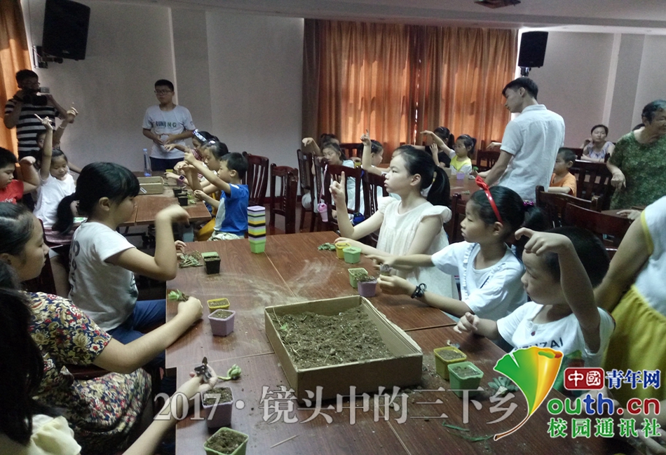 在实践队员的引导之下,孩子们纷纷拿起手中的多肉,按照我们说的步骤慢慢来,将多肉种植在小花盆里面。孩子们的动手能力非常棒,不一会儿,一株株多肉找到了自己的归宿。中国青年网通讯员 于佳铭 摄