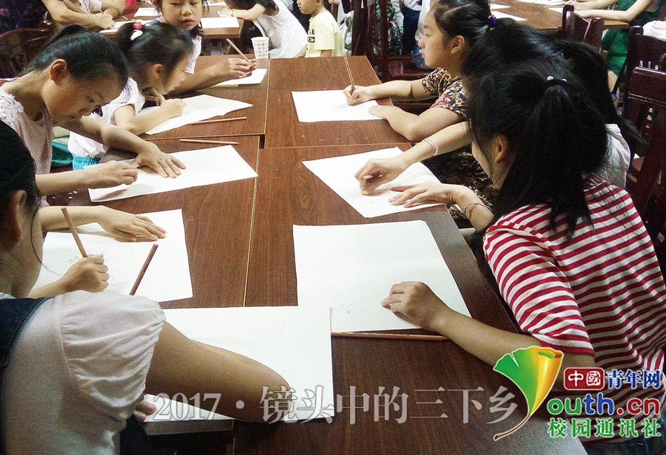 好记性不如烂笔头,有好的技巧要学会运用。在老人的指导下,孩子们慢慢在纸上描绘着,刚开始时,孩子们还是在简单地画小花,但逐渐掌握技巧之后,孩子们也开始尝试着各种可爱的小动物。中国青年网通讯员 于佳铭 摄