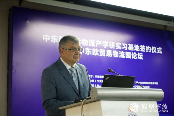 图为中东欧物流与服务学院波方院长NAZARKO教授讲话