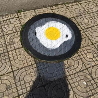 以后要是饿了可以低下头在窨井盖上找安慰哦滋滋滋,荷包蛋是不是很诱人呢?