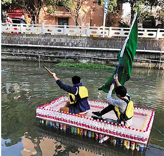 “我们想把宣传环保理念变成一件有趣的事,能够调动起同学们的兴趣,再加上是为了呼吁同学保护水环境,就想到了做艘船。”杨迪龙介绍说。