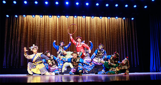近日,由浙江省教育厅、浙江省财政厅、浙江省文化厅、浙江省广电局共同主办的“2015年高雅艺术进校园之浙江京剧团——国色天香”专场主题演出在浙江大学宁波理工学院举行,近千名师生观看了演出。浙江京剧团在经典曲目上精挑细选,涵盖了从传统到现代的精华曲目,又将剧情根据当代人的喜好进行了适当的修改。图为艺术家表演京剧名段《哪吒闹海》。