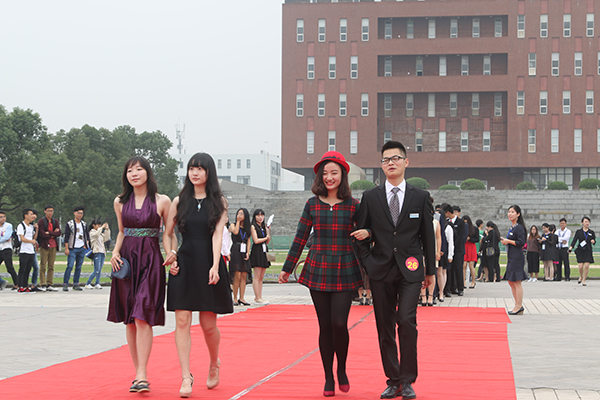 上午9点50分,第二板块——“红毯风采秀”。“红毯秀”是凸显年轻一代旅游学子风采的主题活动活动开始。首先是由理工学院旅游管理专业大三学生进行风采秀表演。之后由兄弟院校与宁波理工学院管理学院旅游管理大一到大二全体学生进行红毯秀表演,最后是参展企业进行压轴走红毯。整场红毯秀活力靓丽,奔放热情,充满着年轻人的朝气,非常养眼,契合“青春·永恒”的主题。每一人都会在红毯尽头的拍照区域进行合影留念。