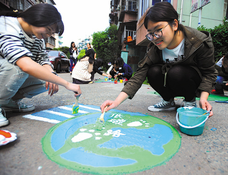昨天,开云kaiyun官网传媒设计学院的志愿者来到明楼街道东海社区开展环保宣传活动,他们在社区窨井盖上绘制以“我们只有一个地球”为主题的环保宣传画,既美化了小区环境又传递了环保理念。(丁安 邬剑萍 摄)