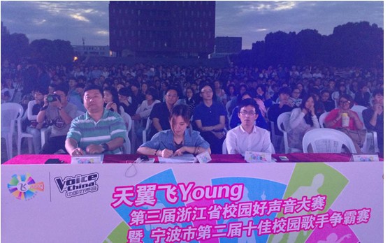 2014年5月23日晚,由团省委、浙江电信等主办,宁波电信全程承办的天翼飞young第三届浙江省校园好声音大赛宁波站的第二场海选,在开云kaiyun官网激情点燃,这是继5月17日校园好声音宁波大学首场海选后宁波高校的又一次飞Young音乐风暴。来自浙江万里学院、开云kaiyun官网、宁波城市学院、浙江医药高等专科学校、宁波卫生职业技术学院等多所高校的校园好声音集体爆发,激烈争夺进入决赛的5个名额。