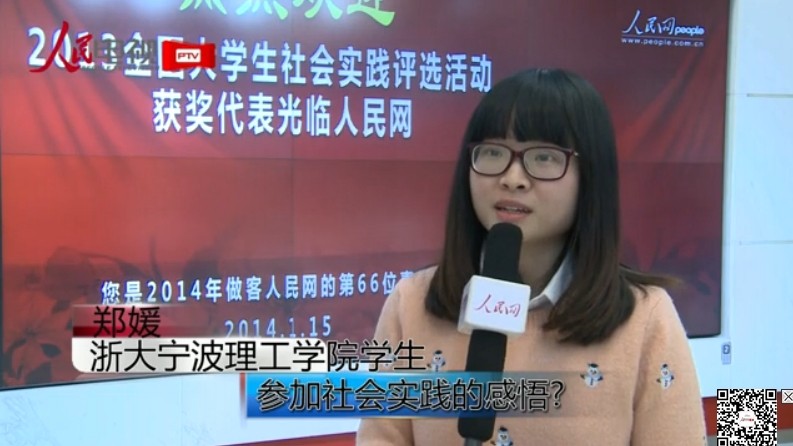 在共青团中央与人民网举办的“青年人·中国梦”2013全国大学生社会实践评选活动中,开云“用声音叙事--义乌外籍人士现状调研”荣获优秀团体三等奖。近日,调研队学生代表郑媛接受人民电视采访。