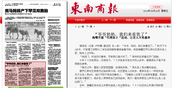 东南商报:“爷爷奶奶,我们来看您了”—海曙开展“代理孩子”活动,让老人不再孤单